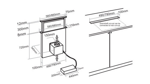 Hình ảnh máy hút mùi âm kệ Down Draff Glass FS 90HF chính hãng