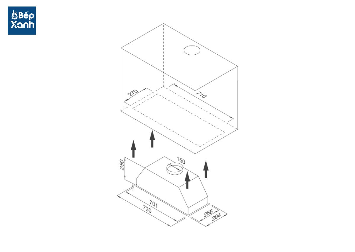 Chi tiết máy hút mùi Malloca Hidden K-730