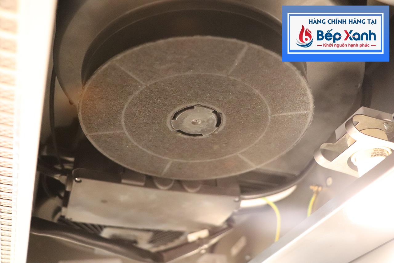 Khử mùi siêu sạch bằng than hoạt tính: Tại 2 họng hút của động cơ được gắn 2 bánh than khử mùi hiệu quả, lọc sạch mùi hôi trong bếp, đem đến không gian sang trọng và tiện nghi nhất cho căn bếp.
