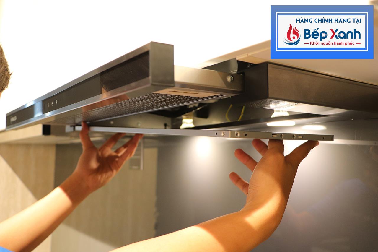 Có thể kéo dãn tăng kích thước của lưới hút: Máy có 2 phần trượt trên nhau, tăng kích thước và phạm vi hút giúp khử hoàn toàn khói bụi và mùi hôi từ quá trình nấu nướng
