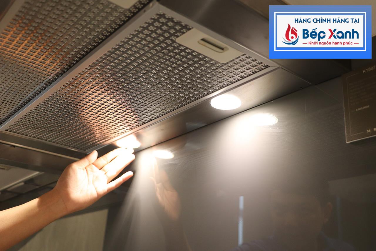 Đèn Led sang trọng và sáng: Máy hút mùi âm tủ có 2 đèn led sang trọng, có thể mở lên nhằm tăng độ sáng cho khu vực nấu nướng. Chính điều này giúp bạn vừa nấu nướng dễ dàng, nhưng không làm ảnh hưởng tới những người xung quanh, và tiết kiệm điện năng trong quá trình sử dụng.