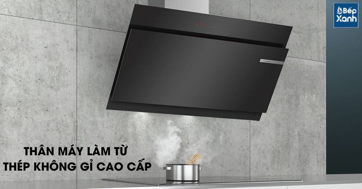 Máy hút khói khử mùi Bosch có thân máy được làm từ chất liệu thép không gỉ cao cấp, chống bám bẩn và chống bám vân tay, dễ dàng vệ sinh và làm sạch, đem lại không gian luôn sáng nổi bật. Kết hợp kính đen cao cấp có màu sắc nhìn rất tinh tế và sang trọng.