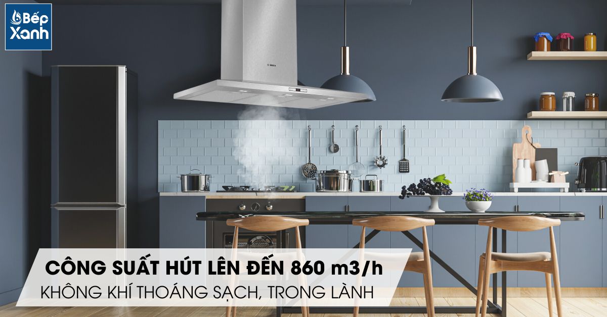 Máy hút khói khử mùi Bosch DWW098E50 có thể đạt công suất lớn nhất lên tới 860 m³/h, điều đó giúp cho không gian nhà bếp luôn thoáng mùi, sạch sẽ và tạo ra lượng khí trong lành trong nhà bếp một cách nhanh chóng. Được thiết lập chuyên sâu với hút tự động: khôi phục bầu không khí trong lành sau 6 phút hoạt động chuyên sâu. Do vậy mà sản phẩm này nhanh chóng nhận được sự yêu thích của đông đảo người dùng.