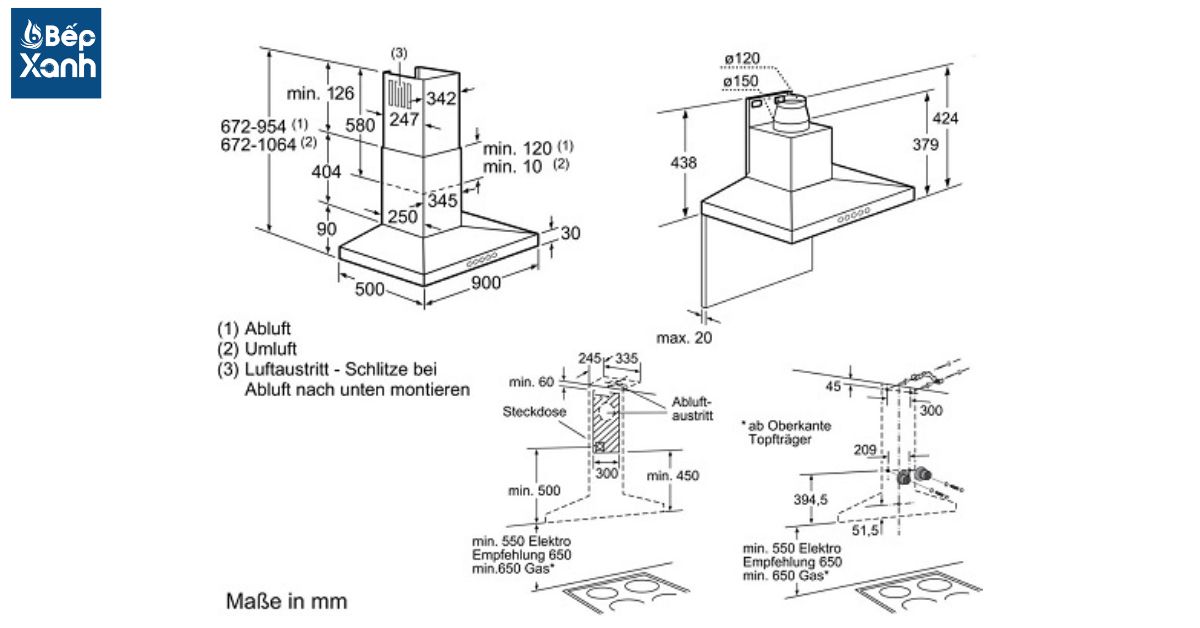 Kích thước sản phẩm máy hút mùi Bosch DWW098E50