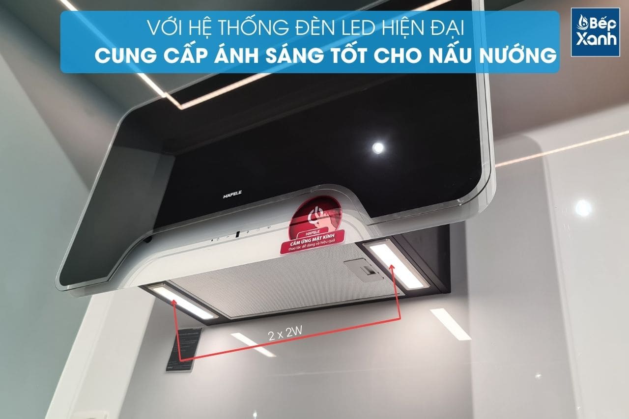 Máy được trang bị đèn LED 2x2W mang đến sự ấm áp cho không gian bếp, đồng thời tăng độ sáng cho khu vực nấu nướng. Chính điều này giúp bạn vừa nấu nướng dễ dàng vừa tiết kiệm điện năng trong quá trình sử dụng.