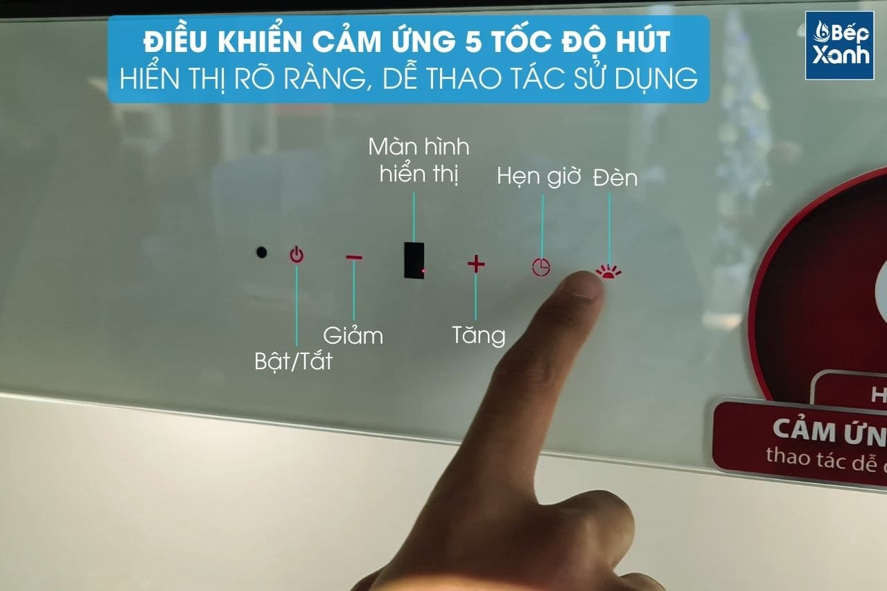 Máy hút mùi Hafele HH-WVGS90A 533.80.203 được trang bị bảng điều khiển cảm ứng 5 cấp độ cực nhanh nhạy, dễ sử dụng, màn hình hiển thị rõ nét.