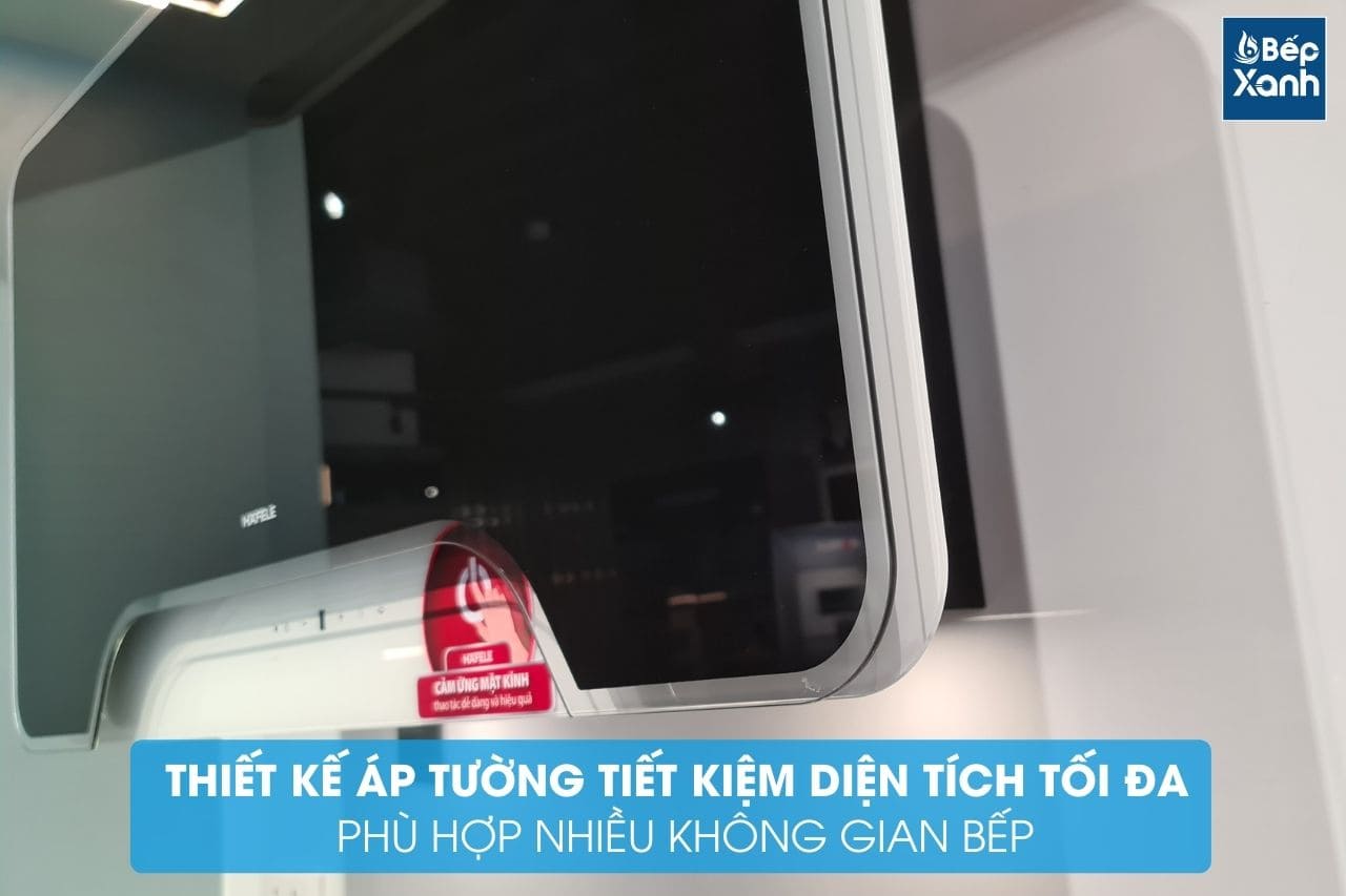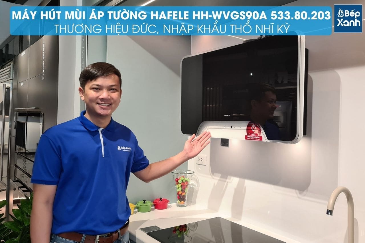 Trong số đó mẫu máy hút mùi dạng áp tường HH-WVGS90A 533.80.203 đến từ thương hiệu Hafele - Đức nổi bật hơn cả nhờ thiết kế áp tường nhỏ gọn, mặt kính đen sang trọng, khử mùi triệt để bằng than hoạt tính đang là sản phẩm được nhiều người dùng tin tưởng sử dụng.