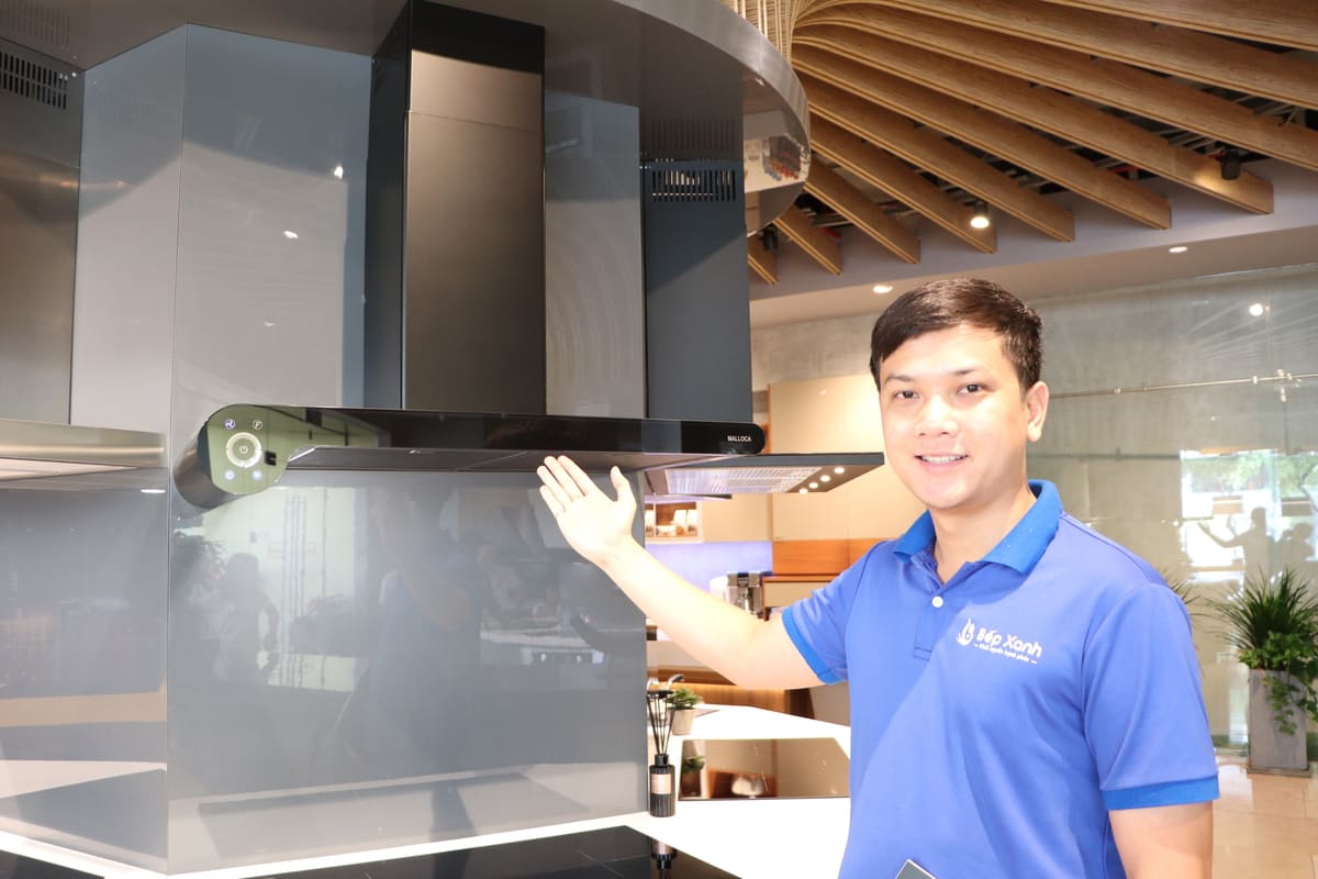 Thông thường, bảng điều khiển máy hút khử mùi của Malloca sẽ nằm ở giữa. Nhưng với mẫu Circle F-188, Malloca đã khéo léo sắp xếp chúng ở góc bên trái máy.