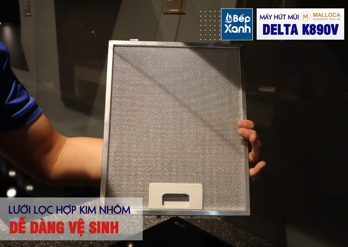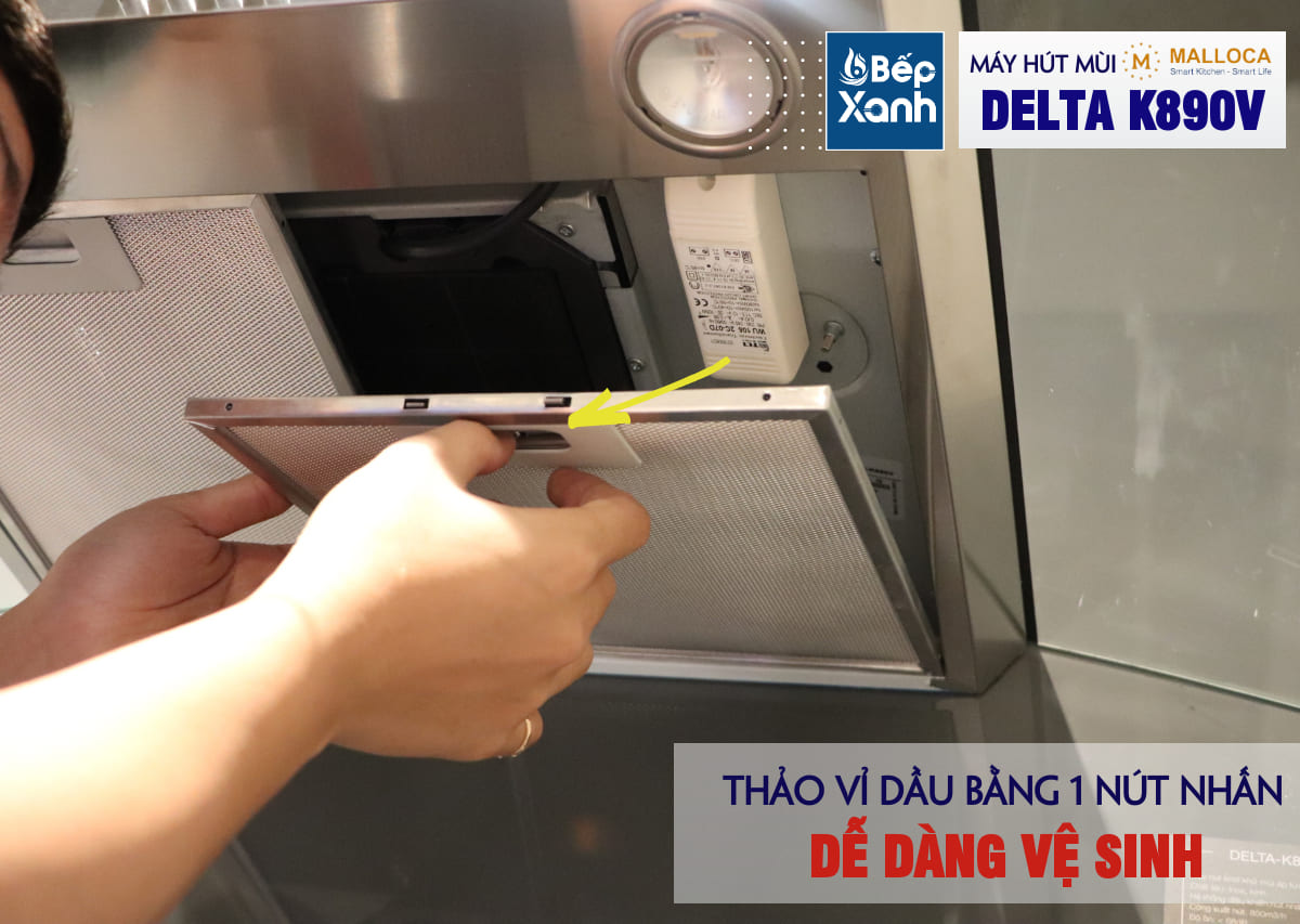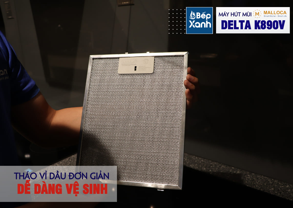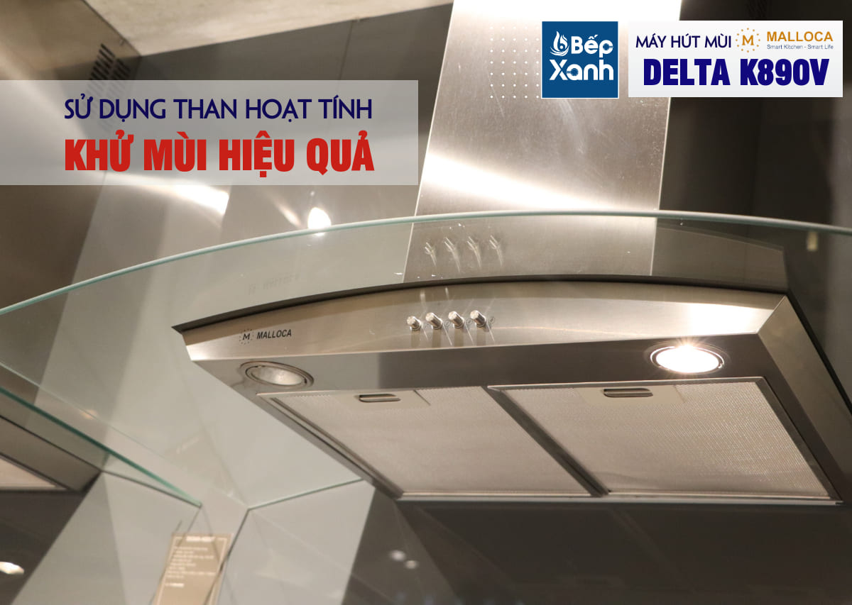 Khử mùi hiệu quả: Ngoài khử mùi bằng ống dẫn được lắp đặt thoát ra ngoài, máy hút mùi Delta-K890V còn được trang bị than hoạt tính ở bên trong. Than này có tác dụng khủ mùi triệt để, làm dịu đi mùi hôi ngay lập tức và giúp cho không gian bếp thông thoáng hơn trong quá trình nấu nướng.