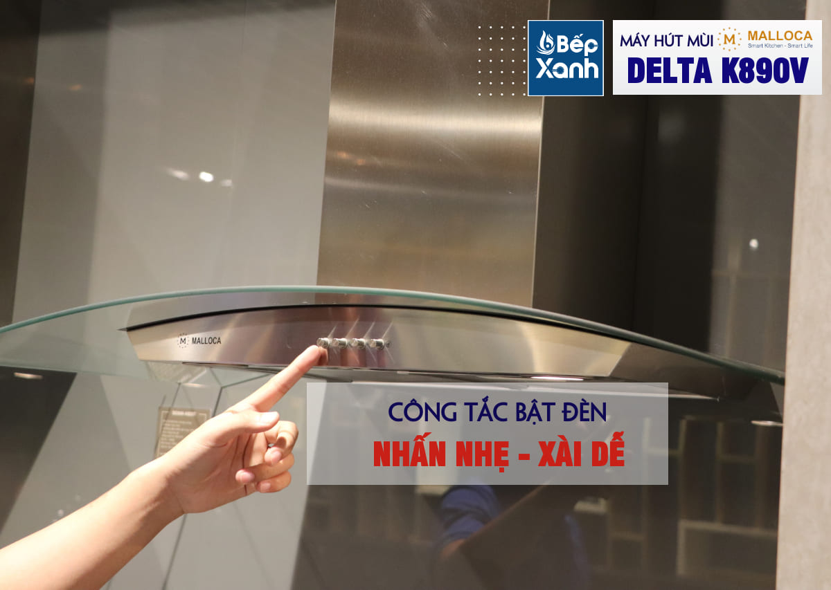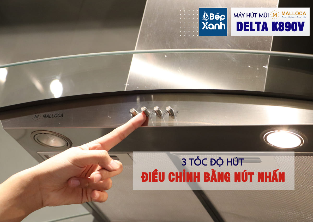 Điều khiển dễ dàng bằng nút nhấn: Máy hút mùi Malloca Delta-K890V có 3 tốc độ hút, bạn chỉ còn chọn tốc độ mong muốn bằng cách nhấn các nút điều khiển bên trên rất dễ.