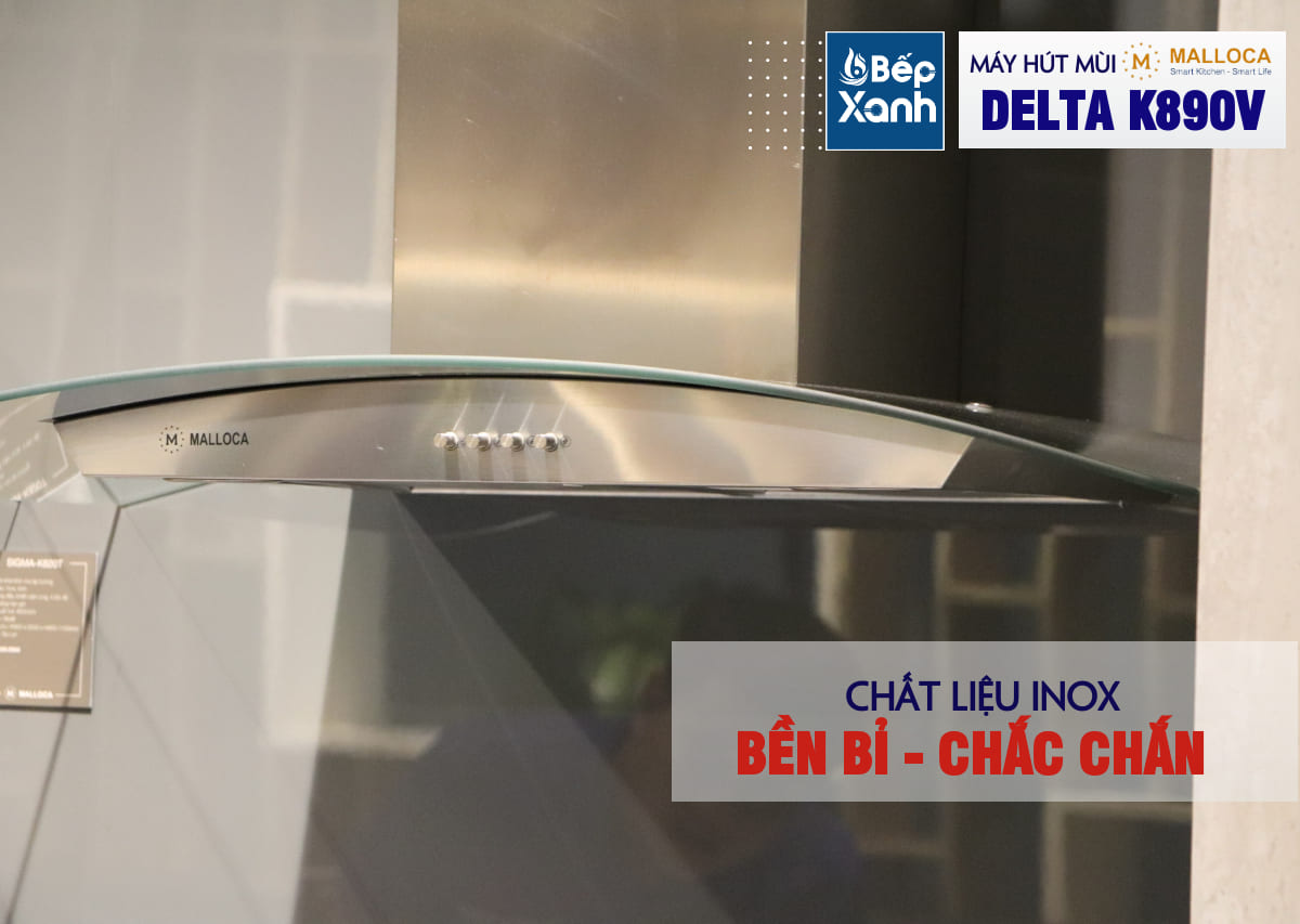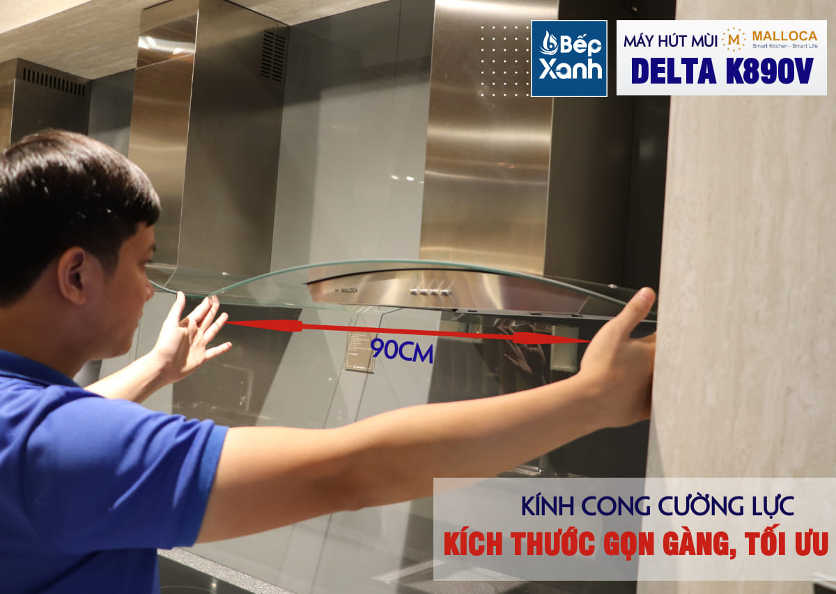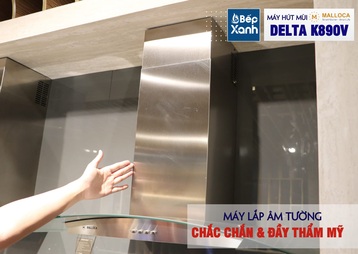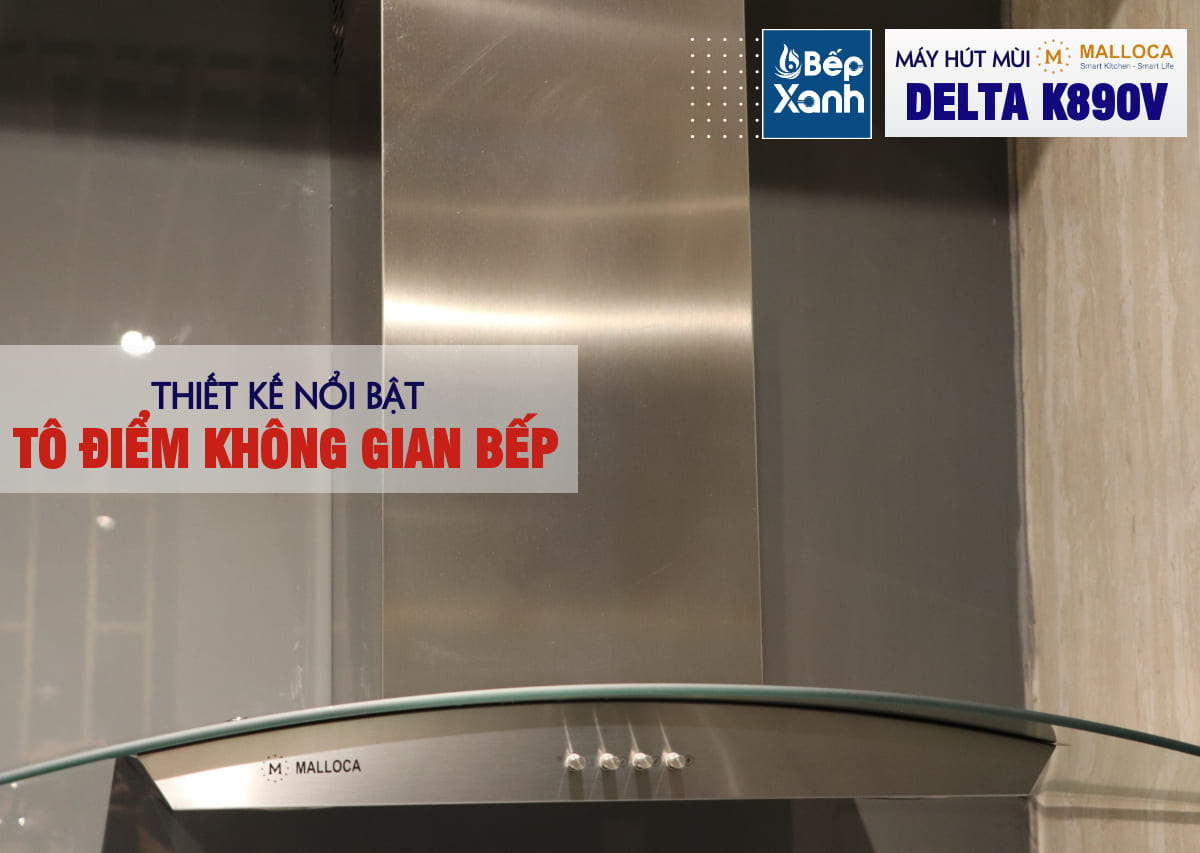 Malloca Delta-K890V là máy hút mùi lắp dạng áp tường, thiết kế kính cong hiện đại và sang trọng. Khi đặt sản phẩm ở bếp, không gian xung quanh chắc chắn trở nên nổi bật và thu hút.