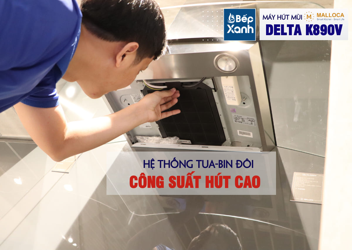 Cống suất hút 850 m3/giờ: Cũng giống với các loại máy hút mùi Malloca khác, Malloca Delta-K890V sở hữu hệ thống tua-bin đôi để mang lại công suất hút cao cho máy. Tổng công suất của máy là 250W với công suất hút 850 m3/giờ, đảm bảo hiệu suất cao để khử mùi tối ưu nhất cho bếp.