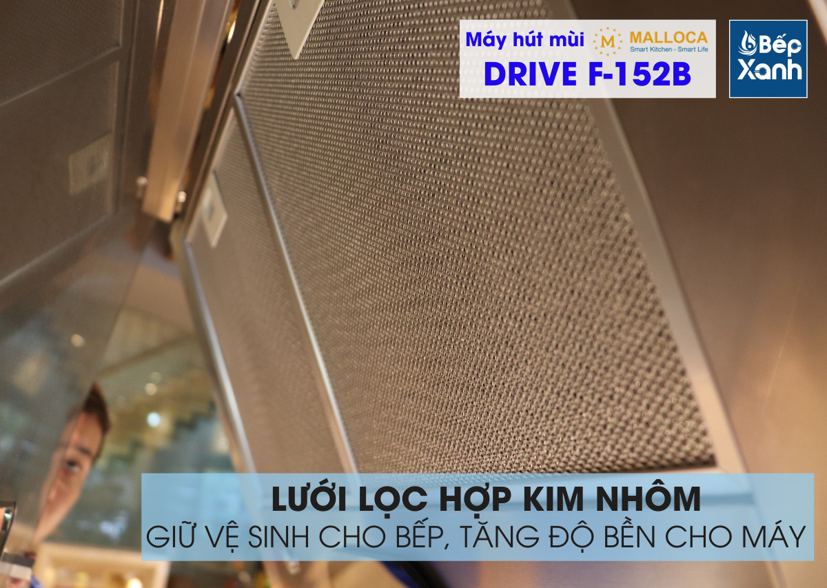 Malloca DRIVE F-152B là máy hút mùi lắp dạng áp tường, chức năng cảm biến nhiệt độ tự động, tính năng thông báo vệ sinh lưới lọc và than hoạt tính. Khi đặt sản phẩm ở bếp, không gian xung quanh chắc chắn trở nên nổi bật và thu hút.