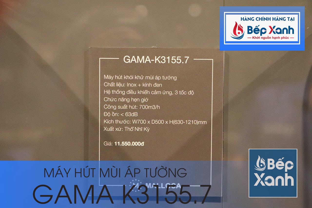 Máy húi mùi áp tường Malloca Gama K3155.7 - Thiết kế kính cong hiện đại, tiện ích cho gia đình