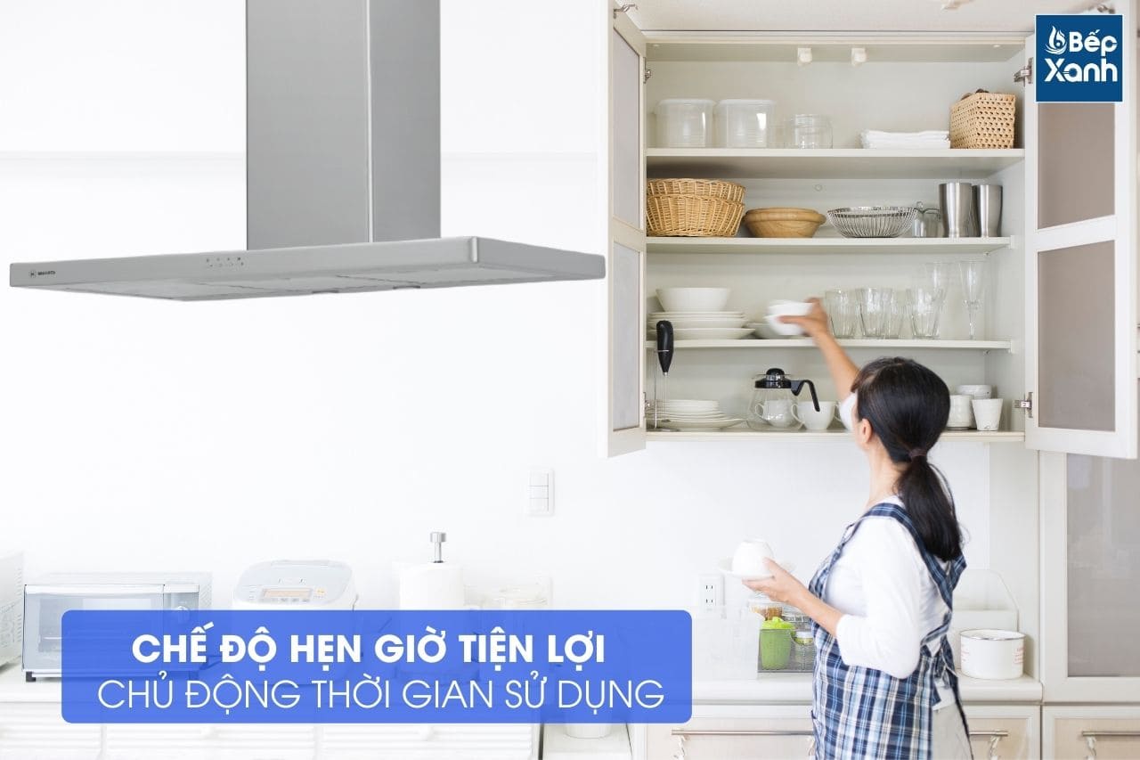 Máy hút mùi Malloca có chế độ hẹn giờ được cài đặt thời gian hút tiên lợi, bạn chỉ cần điều chỉnh thời gian như mong muốn, khi hút xong máy sẽ tự động ngắt, tránh tính trạng quên tắt máy hút mùi, tiết kiệm thời gian và điện năng tối đa.