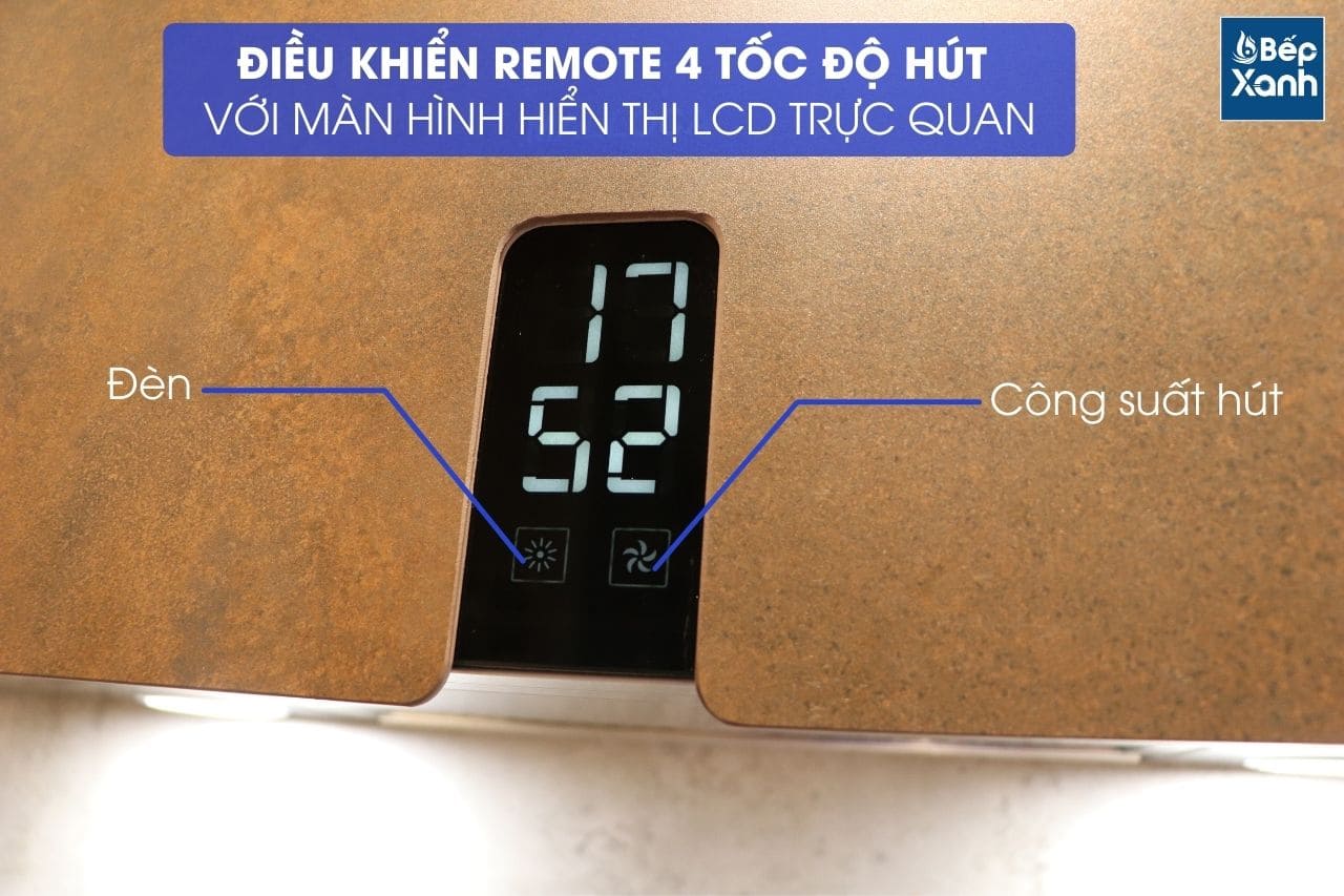 Điều khiển remote hiện đại, màn hình hiển thị LCD với 4 tốc độ hút