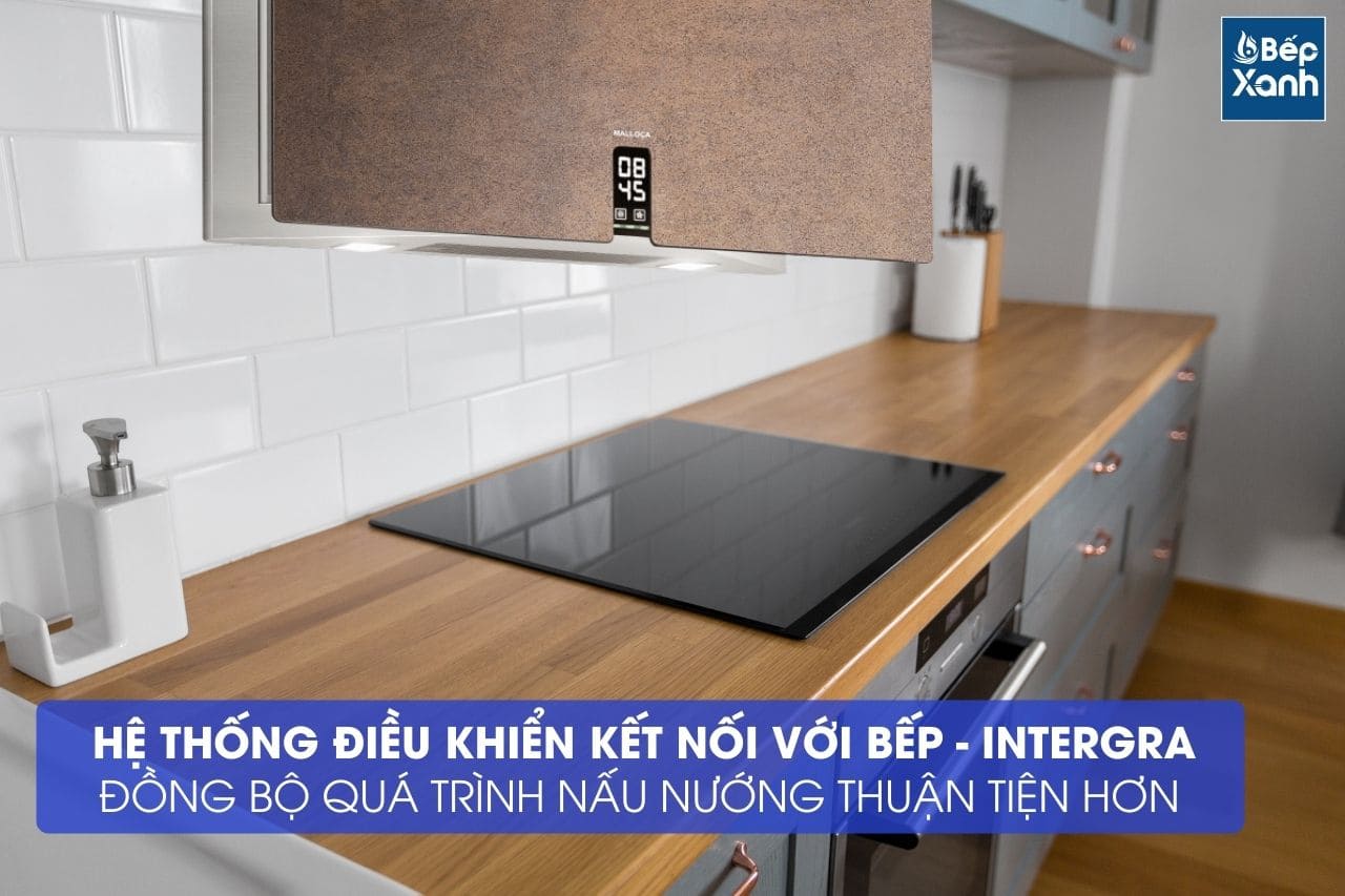 Để đồng bộ hóa quy trình nấu nướng thêm thuận tiện và hiệu quả hơn, máy hút mùi đã được Malloca tích hợp thêm điều khiển Intergra có thể kết nối trực tiếp bếp nấu với máy hút mùi vô cùng tiện lợi.