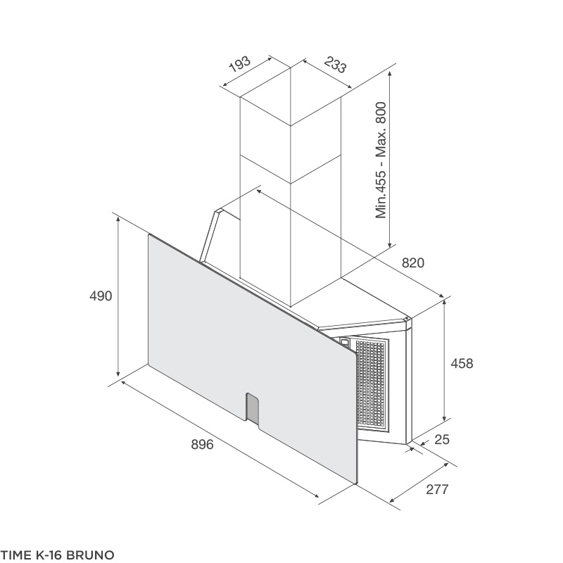 Kích thước sản phẩm máy hút mùi Malloca TIME K-16 BRUNO