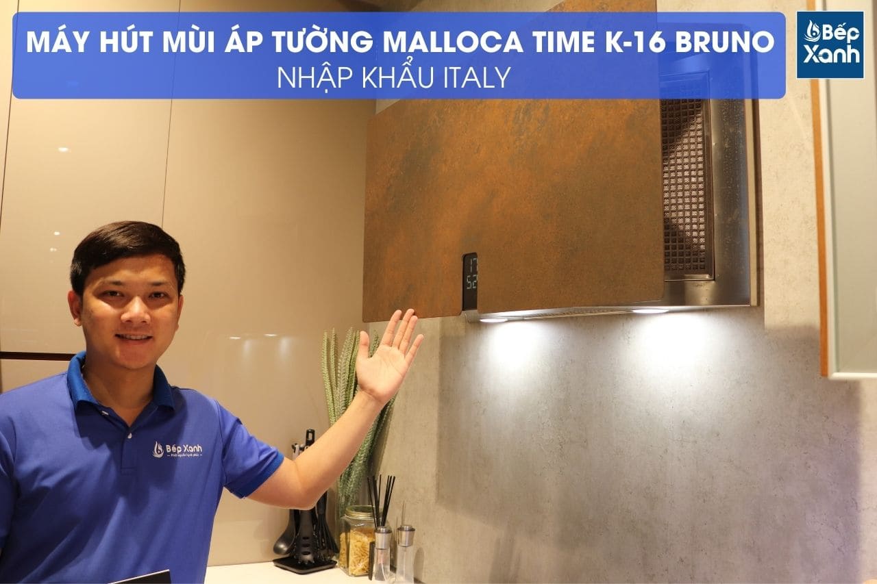 Hiện nay các dòng máy hút mùi không ngừng được cải tiến cả về thiết kế lẫn công nghệ, tích hợp nhiều tính năng tiện ích mang đến tính ứng dụng cao cho người dùng. Trong đó, máy hút mùi Malloca Time K-16 Bruno với thiết kế áp tường dạng thẳng đứng độc đáo, mặt kính Ceramic màu sắt gỉ có thể kết nối với bếp - Intergra được xem là một sản phẩm nổi bật.