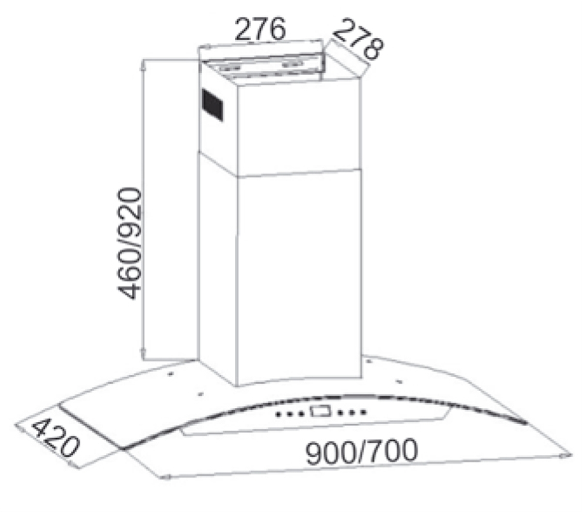 Thông số kỹ thuật | Đèn Led siêu sáng tiết kiệm điện Điều khiển cảm ứng 3 cấp độ Cảm biến hút khói tự động Tính năng hẹn giờ Tính năng điều khiển từ xa Lưới lọc mỡ bằng nhôm 5 lớp Chế độ hút đẩy ra ngoài hoặc khử mùi bằng than hoạt tính |