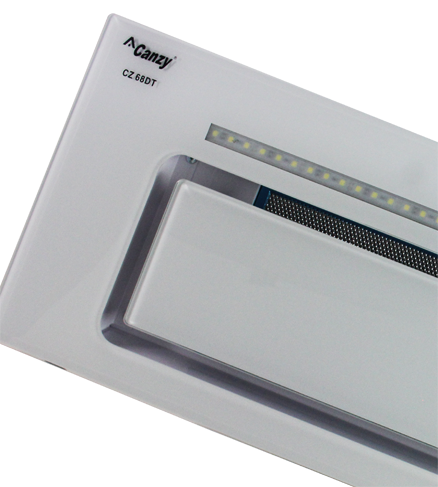 Máy hút mùi cao cấp Canzy CZ 68DT - thiết kế âm tủ có dãi đèn led siêu sáng, bề mặt kính trắng ngọc công suất mạnh mẽ