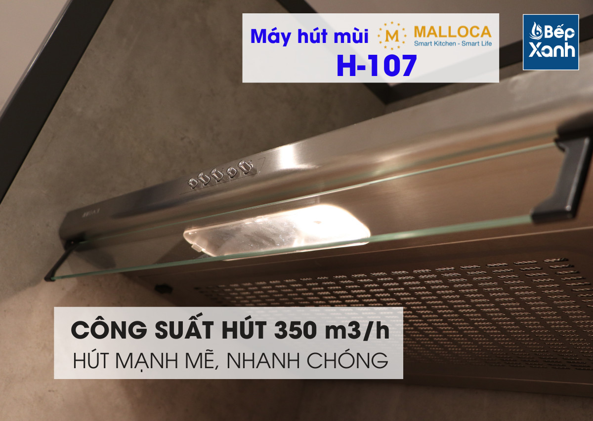 Máy có công suất hút với 350 m3/h giúp hút mùi mạnh mẽ, bảo đảm căn bếp luôn thông thoáng, bay mùi trong quá trình nấu. Sản phẩm đến từ Malloca - một thương hiệu luôn đi đầu về chất lượng thiết bị, máy móc.