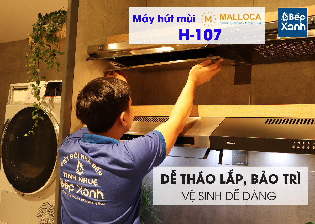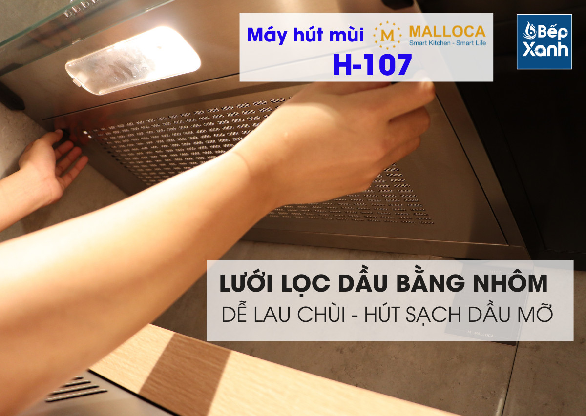 Malloca H107 là sản phẩm máy hút - khử mùi classic, thiết kế hiện đại và sang trọng, tiết kiệm diện tích. Khi đặt sản phẩm ở bếp, không gian xung quanh chắc chắn trở nên nổi bật và thu hút.