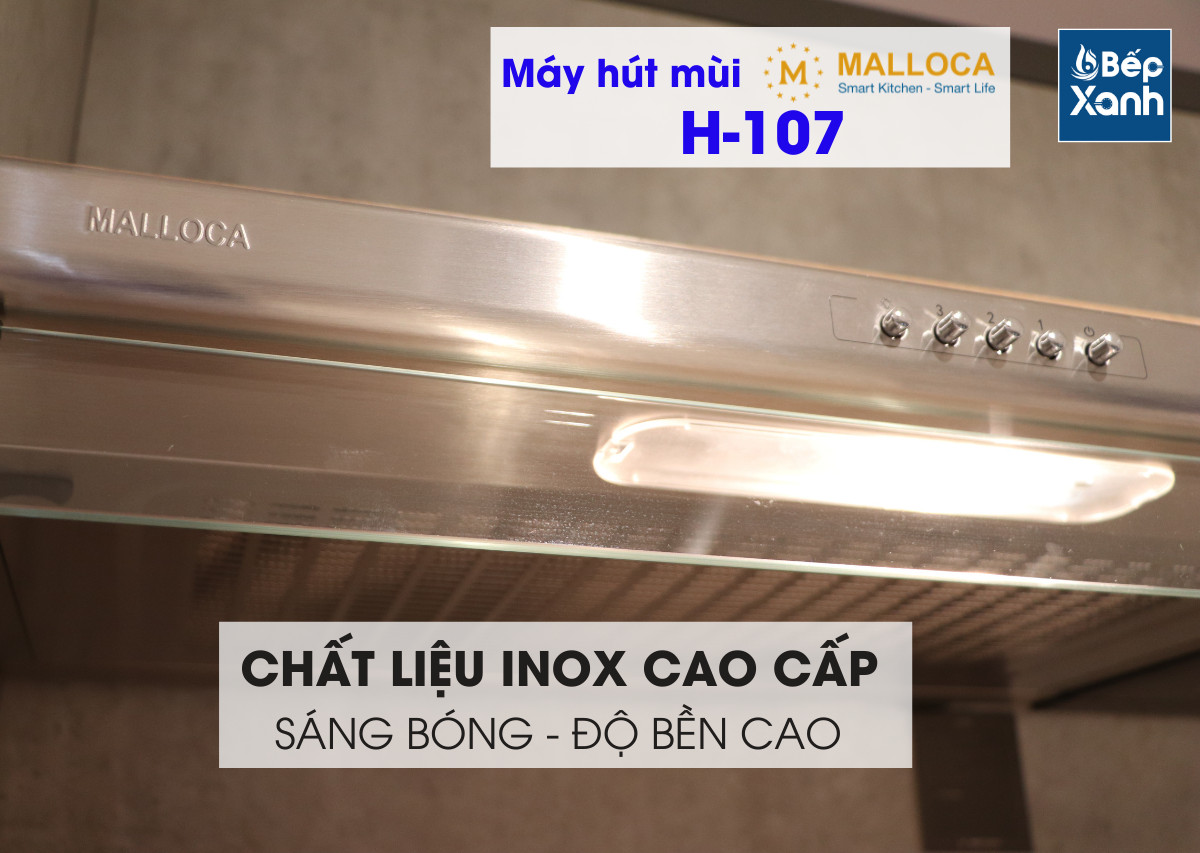 Phần thân máy hút mùi hãng Malloca được làm hoàn toàn bằng chất inox có độ bền cao, sáng bóng, bạn có thể dễ dàng phối với bất kì sản phẩm nội thất nào.