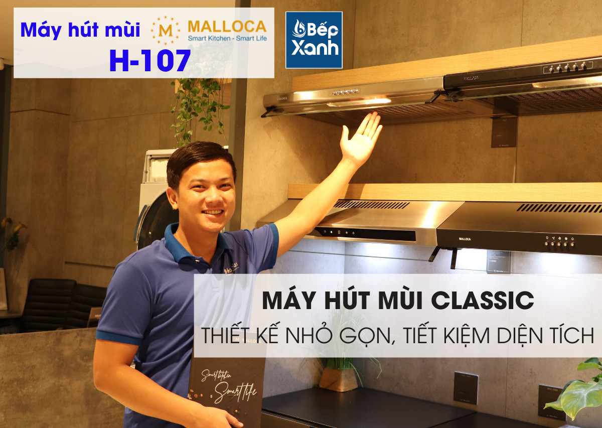 Máy hút mùi classic Malloca H107 thiết kế nhỏ gọn, lắp cùng tủ gỗ hay các thiết kế đơn giản, phù hợp với các căn bếp có diện tích nhỏ, giúp không gian bếp trở nên thoáng đãng hơn.