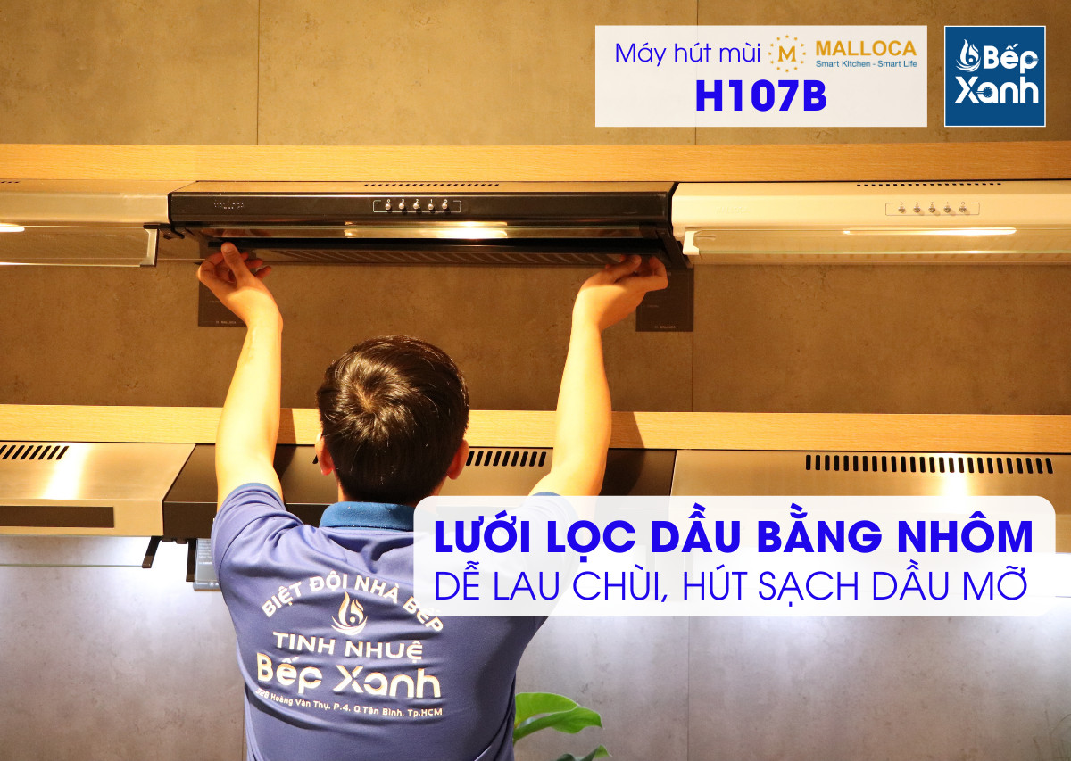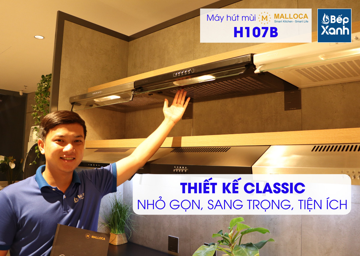 Malloca H107B làmáy hút mùi cổ điển,thiết kế hiện đại và sang trọng, tiết kiệm diện tích. Khi đặt sản phẩm ở bếp, không gian xung quanh chắc chắn trở nên nổi bật và thu hút.