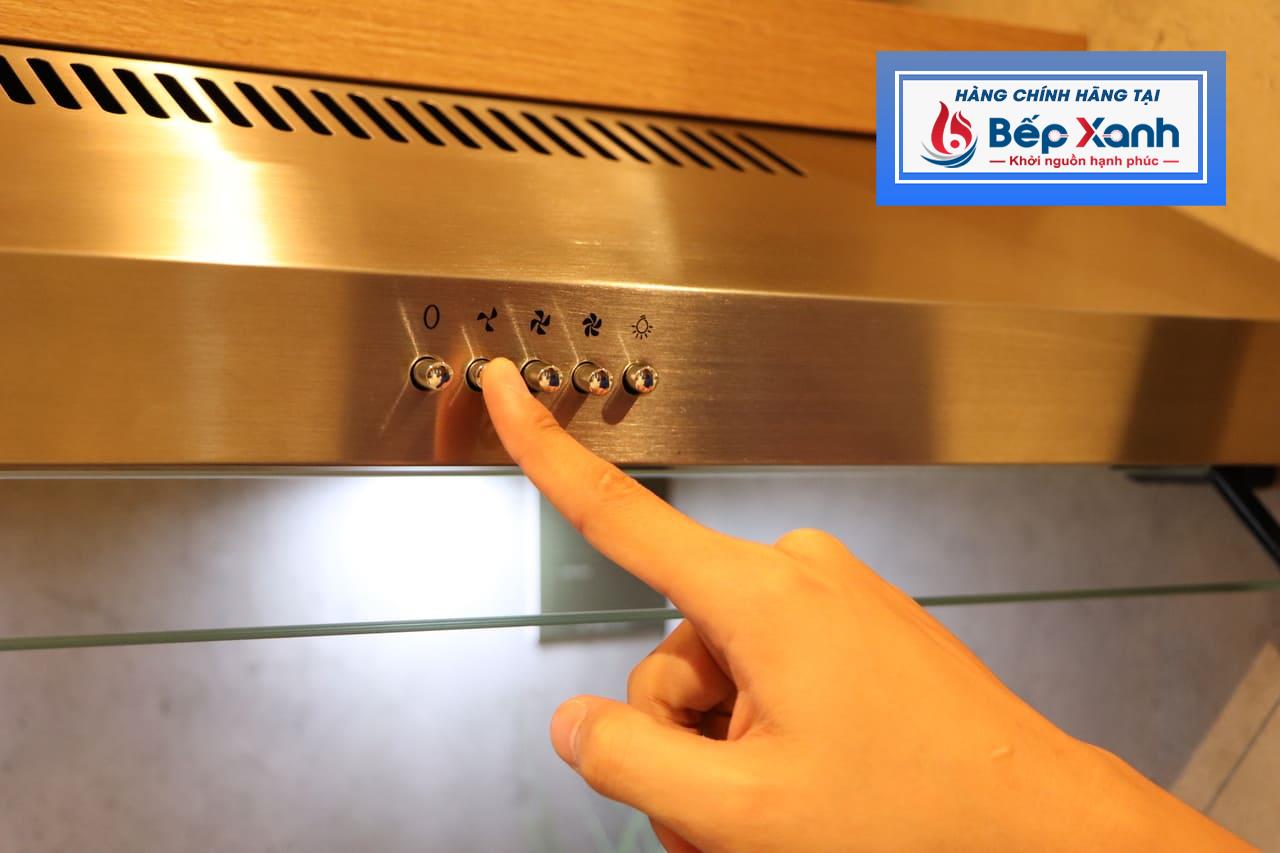 3 phím quạt ở giữa: Tương đương 3 tốc độ hút từ nhẹ đến mạnh, phù hợp nhiều nhu cầu sử dụng khác nhau. Công suất hút tối đa 500m3/h khử mùi hôi hiệu quả.