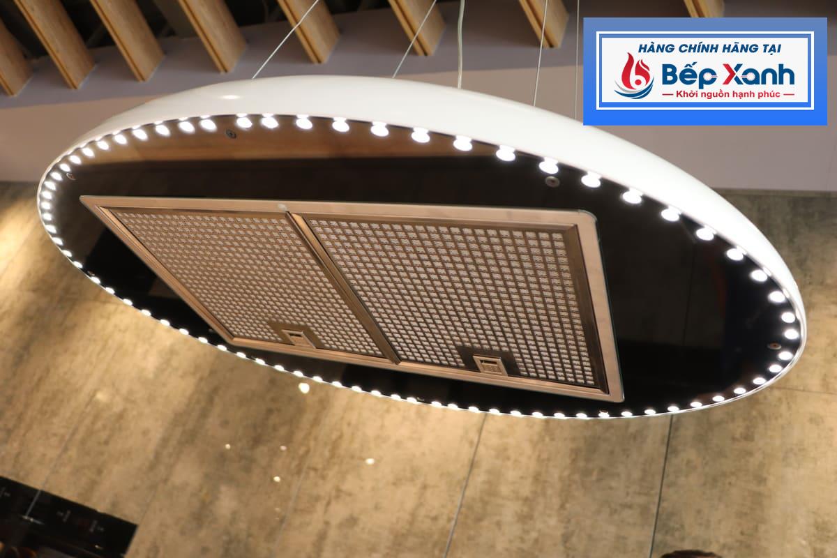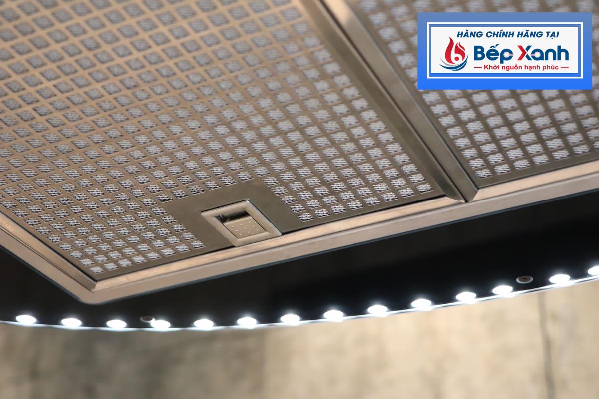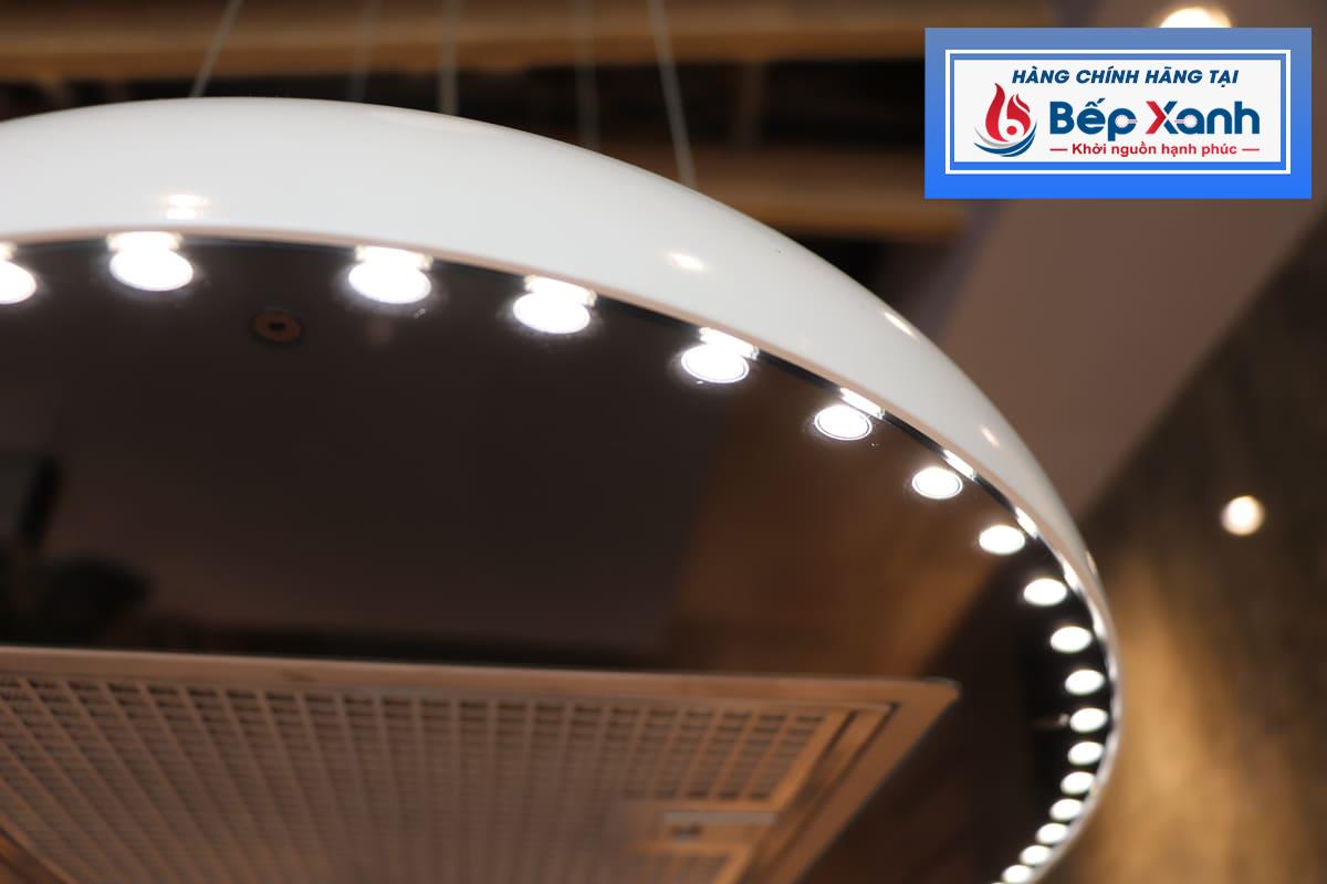 Chạy dọc theo hình Eclipse của máy hút mùi là 72 chiếc đèn Led nhỏ với công suất 12W. Nhờ những chiếc đèn này, dù là ban ngày hay ban đêm thì bếp nhà bạn cũng đều lung linh và thu hút, song song đó đèn cũng hỗ trợ bạn dễ dàng nấu ăn hơn vào ban đêm.