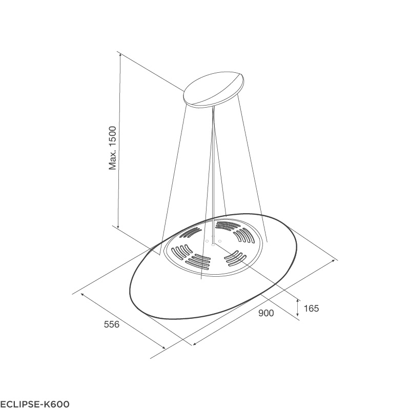 Sở dĩ gọi đây là máy hút mùi đảo (độc lập) là do Eclipse K-600 được lắp treo từ trên xuống, giống như một hòn đảo ở giữa biển. Thiết kế đảo này được đánh giá cao bởi có tác dụng như một vật decor hoàn hảo cho không gian bếp lớn, thường là những gia đình có bếp liền với phòng khách. Ngoài ra, việc treo cao giúp máy dễ dàng hút mùi ở diện rộng, đảm bảo khử mùi sạch và tối ưu.