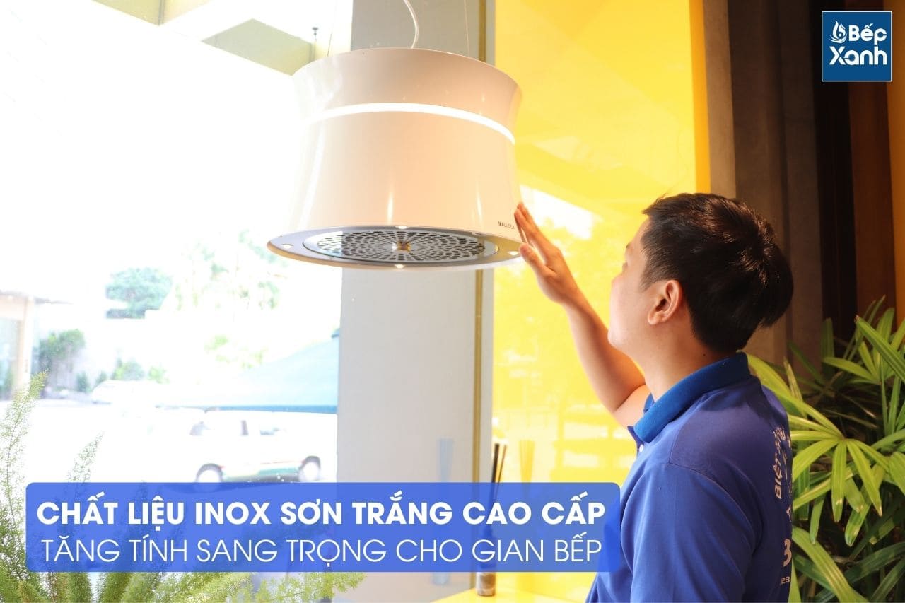 Trong đó, máy hút mùi Malloca SOPHIE K-500W với thiết kế dạng đảo treo độc lập đẹp mắt, chất liệu inox sơn trắng thu hút, khử mùi tự hủy Crisalide là sản phẩm được người dùng đánh giá cao.