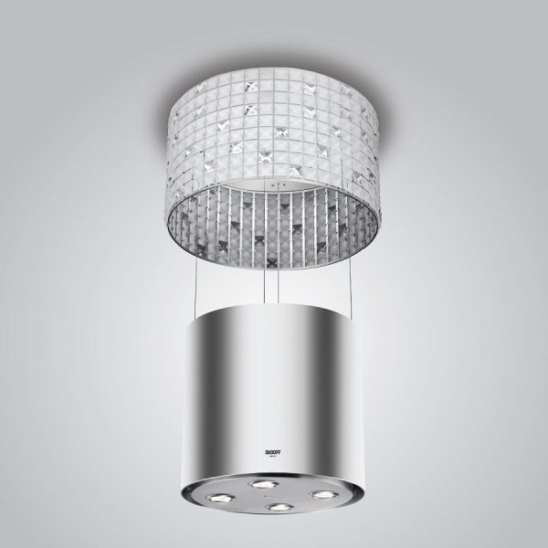 Máy hút mùi được thiết kế thủ công đầy sáng tạo với thân máy hình trụ tròn bằng Inox không gỉ kết nối với khối đèn gắn pha lê của Áo bên trên bằng hệ thống dây cáp Inox chắc chắn, đặc biệt có thể tùy chỉnh độ cao theo ý muốn. Amara là sản phẩm sáng tạo của kĩ thuật công nghệ và nghệ thuật ánh sáng. Mặt đáy của máy được trang bị hệ thống 4 cụm đèn Led hội tụ giúp không gian sáng hơn khi nấu nướng.