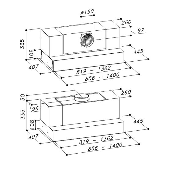 Thông số kỹ thuật của Máy hút khói khử mùi âm tủ Dudoff Aura S90