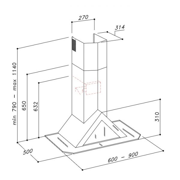 Thông số kỹ thuật của Máy hút khói khử mùi áp tường trang trí Dudoff Hera