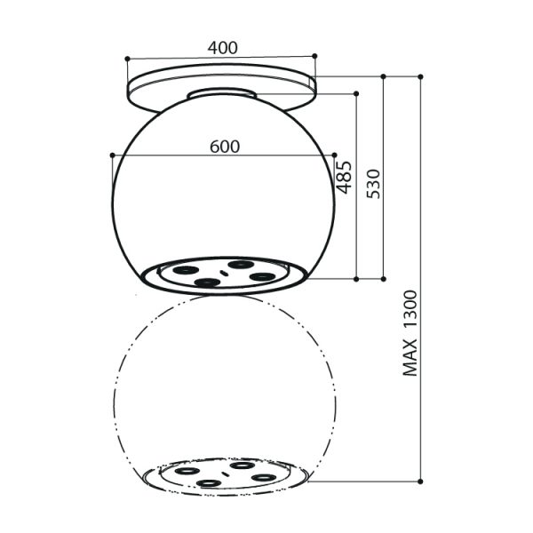 Máy hút mùi trang trí Hermes dáng hình cầu được thiết kế thủ công từ Inox 304 và nhựa Plastic ABS. Lắp đặt độc lập dạng đảo, sử dụng hệ cáp treo Inox thanh mảnh nhưng chắc chắn, máy hút mùi Hermes thể hiện đẳng cấp của công nghệ và tuyệt tác trong thiết kế.
