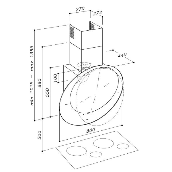 Thông số kỹ thuật của Máy hút khói khử mùi áp tường trang trí Dudoff Iris WG