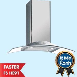 Máy hút mùi Faster FS HE91 là máy hút mùi có kiểu dáng kính cong gắn tường. Không gian bếp nhà bạn sẽ trở lên sang trọng, hiện đại hơn. Dòng máy khử mùi kính cong Faster này mang một đặc tính rất tối ưu cho công nghệ hút mùi. Kích thước 900 được sản xuất trên dây truyền công nghệ cao của Italy được lắp ráp tại Malaysia (theo bản quyền Faster)và được nhập khẩu nguyên chiếc về Việt Nam. Dòng sản phẩm được nhiều người tiêu dùng bình chọn là máy êm, hút khỏe và khử mùi tốt.