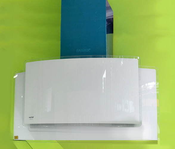 Máy hút mùi Faster Wall Decor - Thiết kế mặt kính trắng, thân hộp inox tinh tế, phù hợp cho không gian bếp rộng rãi.