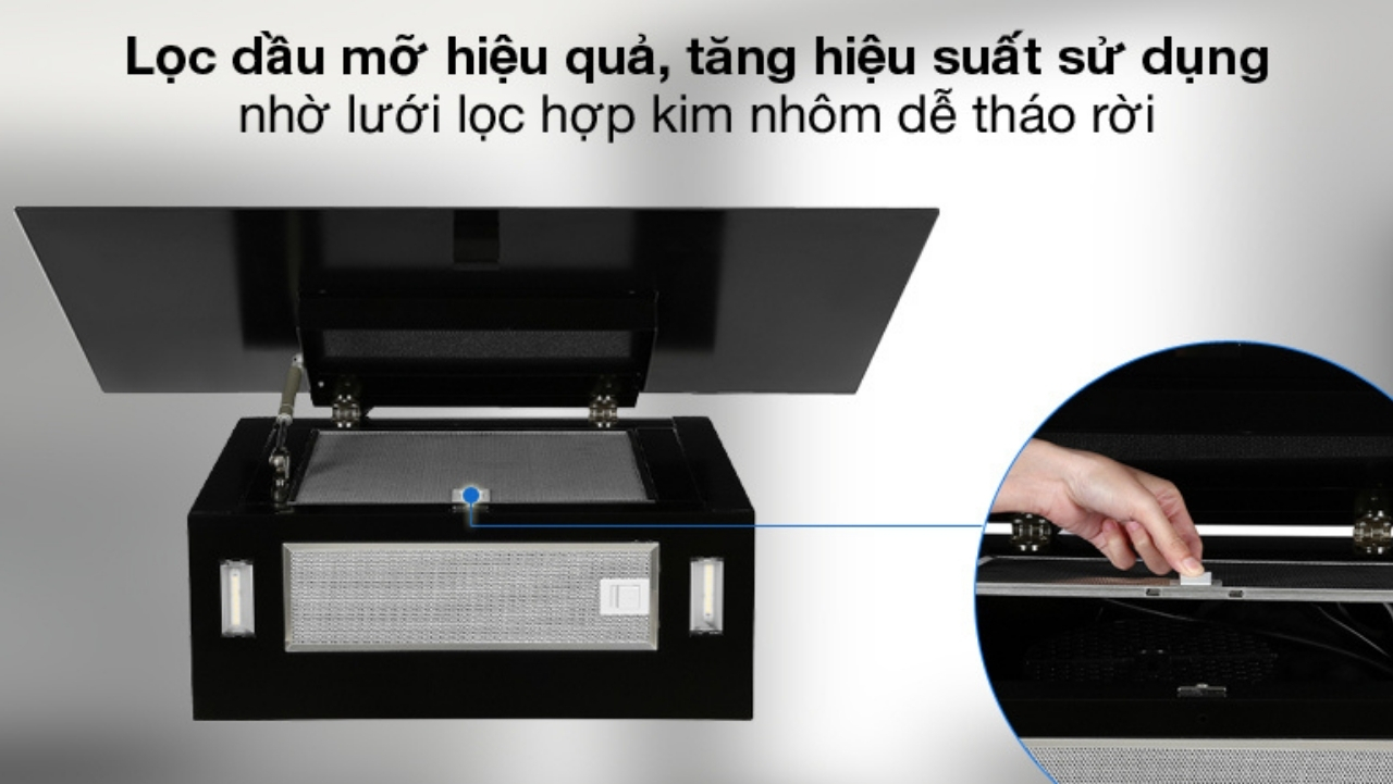 Lưới lọc mỡ bằng hợp kim nhôm bền tốt, thiết kế dễ tháo rời để vệ sinh hiệu quả nhất, tăng hiệu suất làm việc
