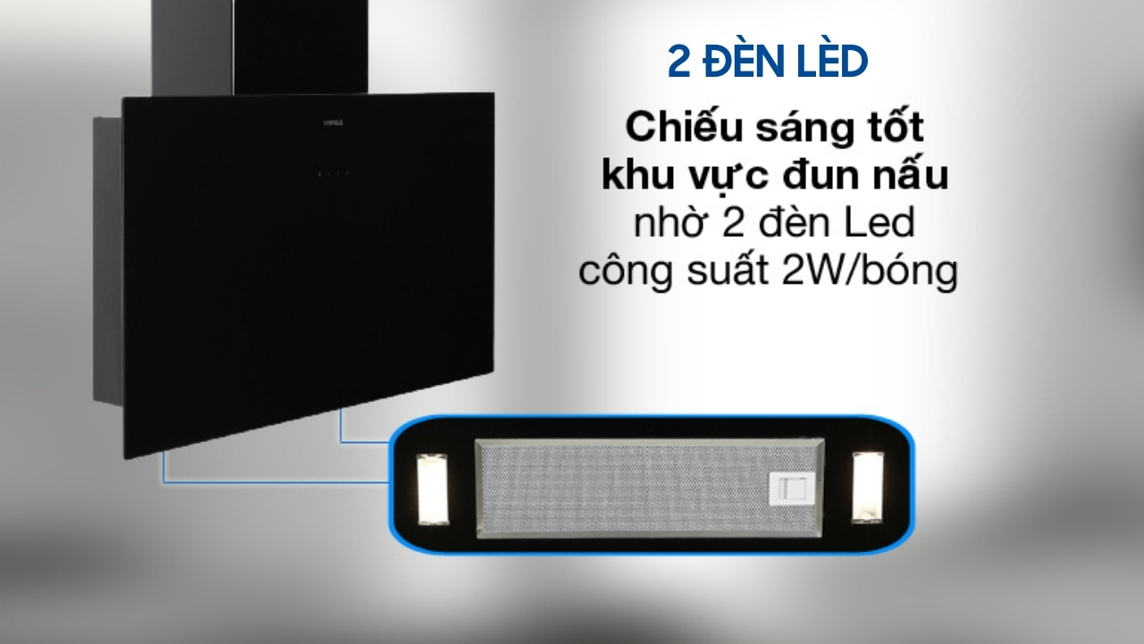 Máy hút mùi Hafele trang bị 2 đèn LED chiếu sáng tốt, công suất 2W/bóng cung cấp đủ ánh sáng cho khu vực đun nấu