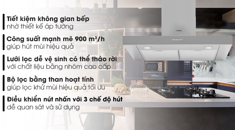 Máy hút mùi Hafele vận hành từ công suất thấp đến công suất cao một cách êm ái, trơn tru tuỳ thuộc vào nhu cầu lựa chọn của người dùng. Nhờ lực hút hiệu quả giúp loại bỏ mùi linh hoạt, ít hao tốn điện. Chế độ hút và khử mùi trực tiếp bằng than hoạt tính hoặc thoát ống ra ngoài, đường kính ống thoát 120 mm.