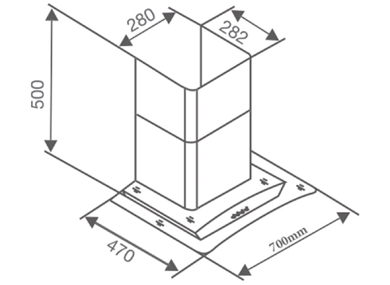 Máy hút mùi kính cong áp tường được thiết kế theo kiểu dáng kính cong gắn tường hiện đại, trang nhã, kích thước nhỏ gọn nên phù hợp cho hầu hết các gian bếp từ hiện đại đến phổ thông, đặc biệt máy sử dụng chất liệu cao cấp từ inox không gỉ và kính cường lực chịu nhiệt tạo nên thân vỏ bền chắc và sang trọng. Máy hút mùi gắn tường này được trang bị bộ điều khiển với 3 mức cấp độ hút dễ sử dụng, hơn nữa máy còn tích hợp đèn LED tiện dụng giúp chiếu sáng không gian nấu nướng và sinh hoạt trong nhà bạn.