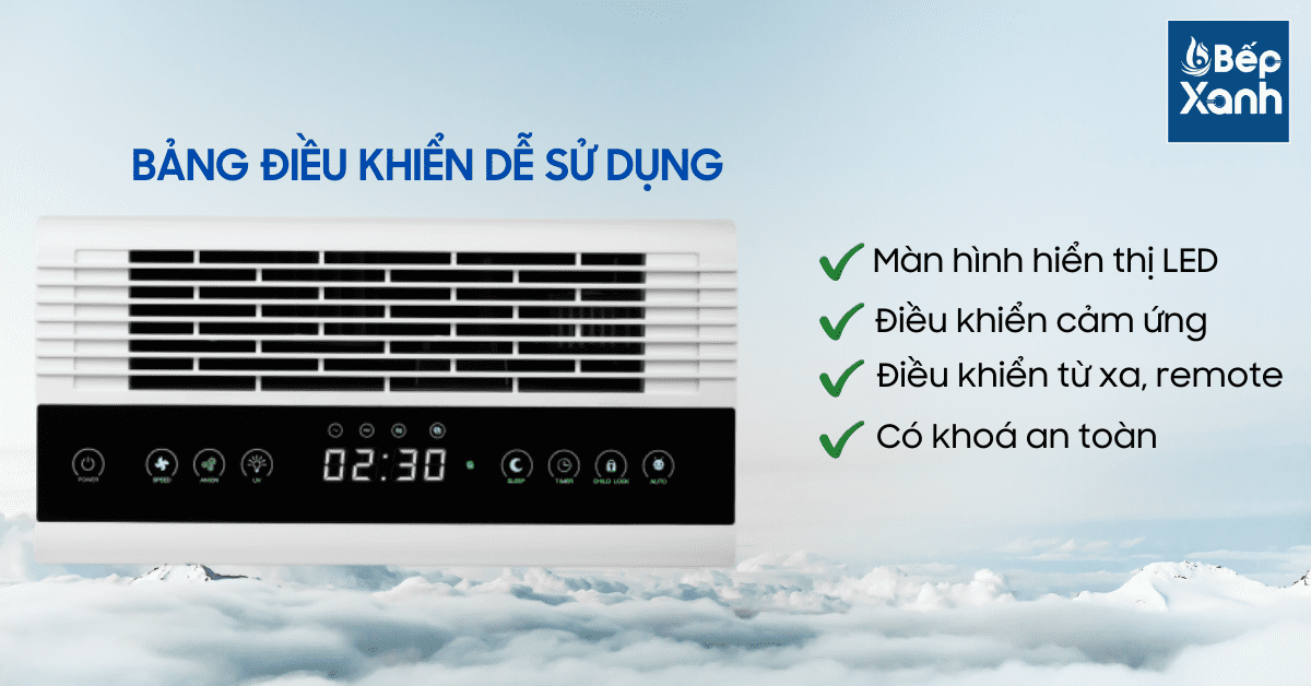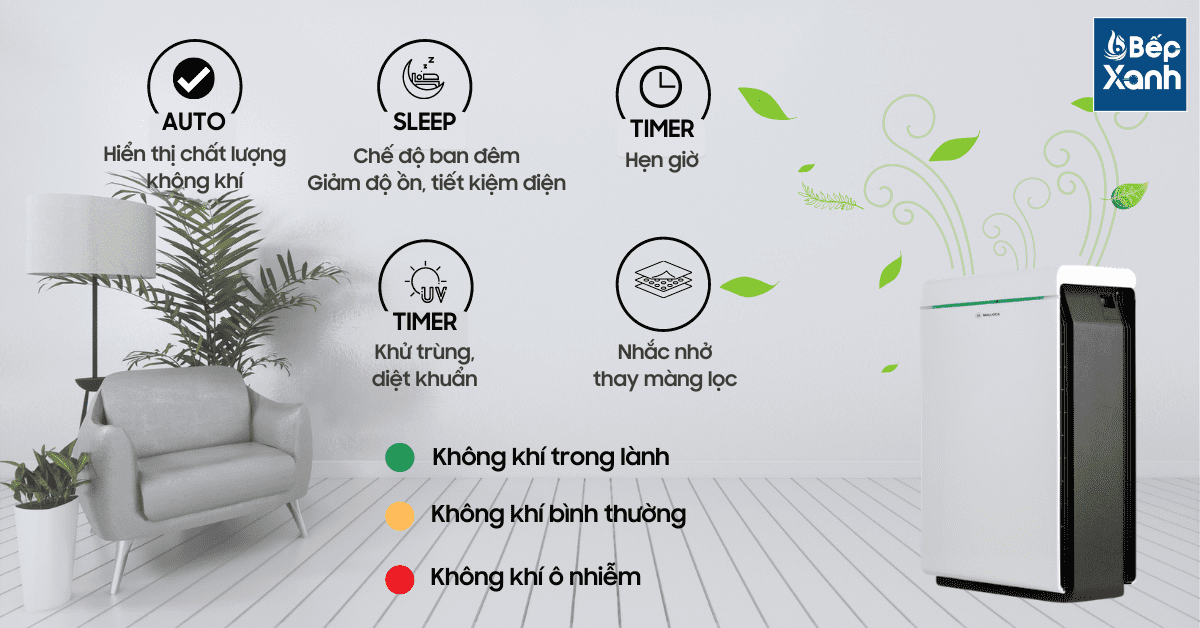 Chức năng nổi bật: Chức năng tự động, Chức năng hẹn giờ, Chế độ ngủ ban đêm, Cảm biến ánh sáng, Cảm biến khói bụi tự động