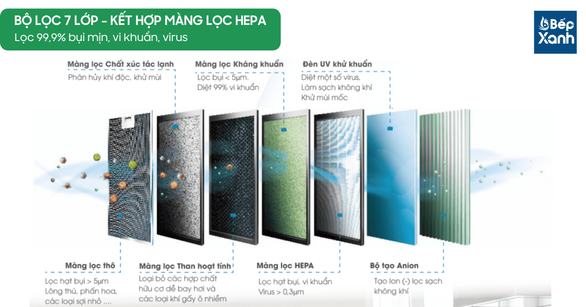 7 lớp màng lọc kết hợp màng lọc HEPA:
