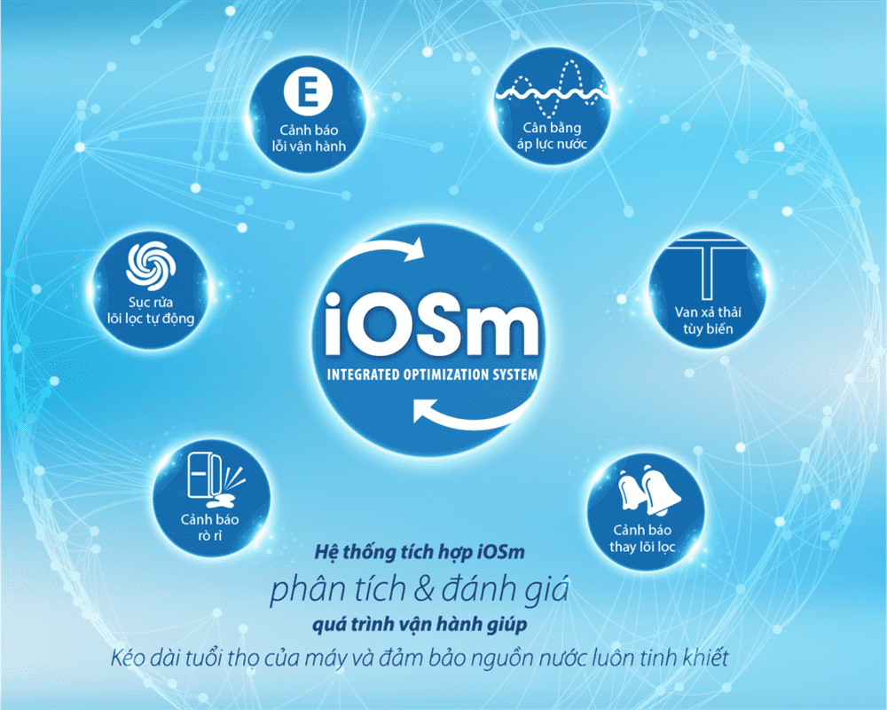 Được phát triển bởi Trung tâm công nghệ tập đoàn A. O. Smith – A. O. Smith Corporate Technology Center (CTC) đặt tại Milwaukee, bang Wisconsin USA. Hệ thống tích hợp tối ưu hóa iOSm: phân tích và đánh giá quá trình vận hành, giúp kéo dài tuổi thọ của máy và đảm bảo nguồn nước luôn luôn tinh khiết.