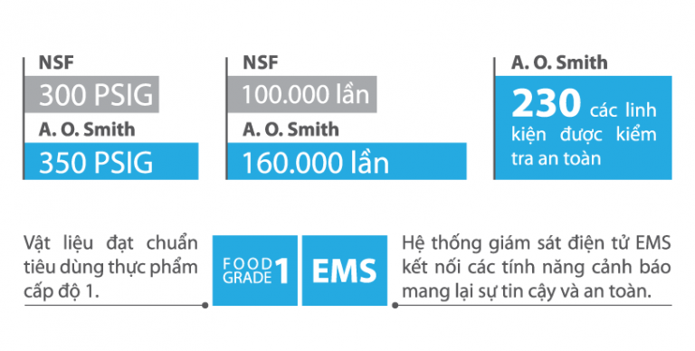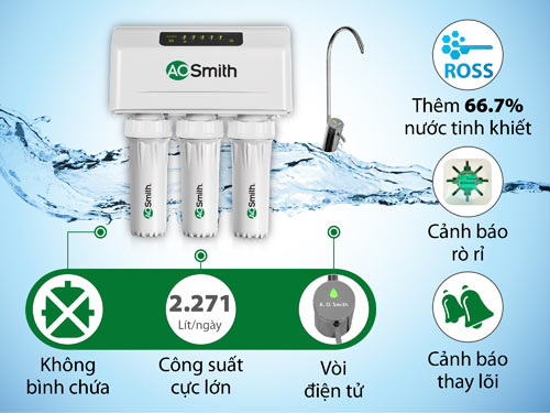 Hiển thị cảnh báo rò rỉ: Điểm đặc biệt đối với máy lọc nước A. O. Smith, khi phát hiện nước có dấu hiệu rò rỉ ngay lập tức máy sẽ ngừng hoạt động, đóng van nước điện tử và liên tục phát ra chuông để cảnh báo. Tiếng kêu sẽ dừng lại khi ngắt nguồn điện và van nước cấp được khóa lại
