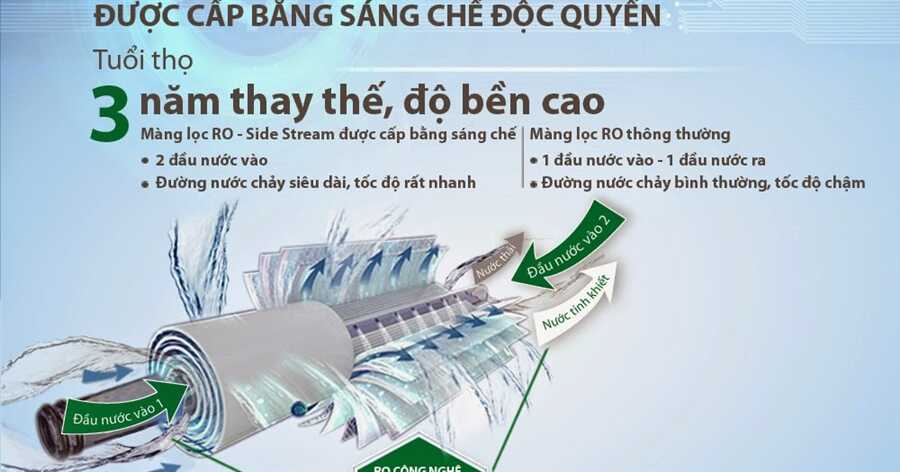Do đó, không chỉ kéo dài được tuổi thọ cho bộ lọc của máy lên đến 1,5 lần so với bộ lọc sử dụng công nghệ RO thường mà lượng nước đầu ra trên một đơn vị thời gian cũng tăng thêm đáng kể, lên đến 94L/giờ.